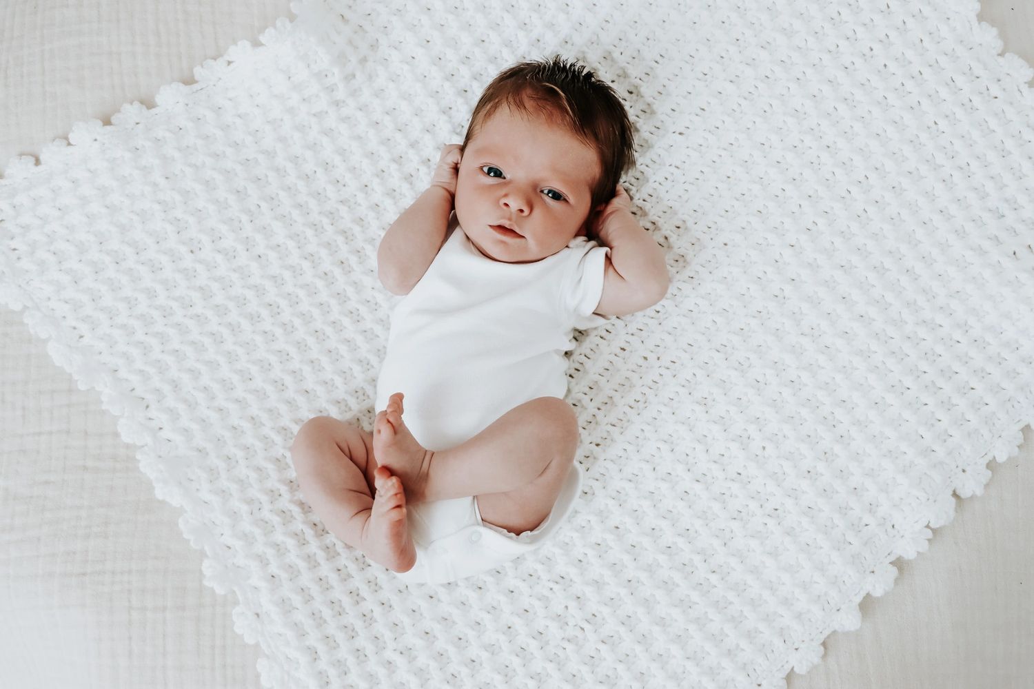 Honestly, whenever you are ready. I don't 'pose' or swaddle babies. I capture babies naturally and comfortably lying on the day bed, beanbag, and in the moses basket so it doesn't matter if they are awake or sleeping. If you have booked a duo or family new-born photoshoot, I’ll capture you having cuddles and during feeds.